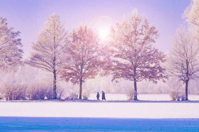 met at dawn amid a forest of snows and crisp foliage of immobile pines