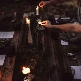 a man writes his name on a papyrus