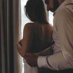she lay cradled in his arms