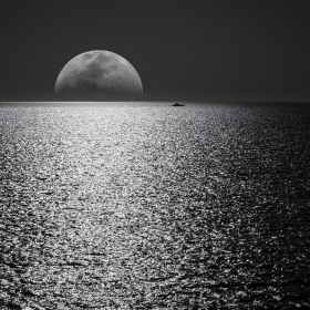 a half moon sculpted by the sun at day stardom at night guides